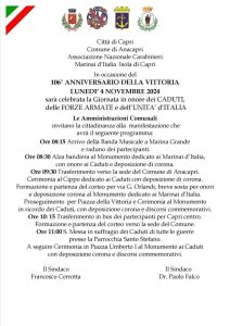 106° Anniversario della Vittoria Giornata delle Forze Armate e dell’Unità d’Italia lunedì 4 novembre