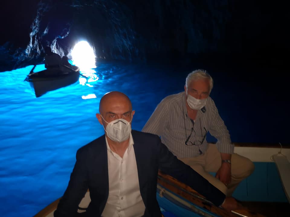 Riaperta ieri la Grotta Azzurra. I primi a varcarne l’ingresso dopo il covid-19 sono stati i rappresntanti delle istituzioni, il sindaco di Anacapri Alessandro Scoppa ed il vicesindaco di Capri, Ciro Lembo. Nel primo giorno di apertura sono stati registrati 150 ingressi.