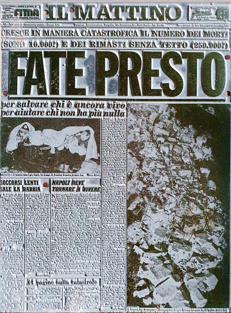 La prima pagina del Mattino di mercoledì 26 novembre 1980 nell’opera di Andy Wharol esposta al Moma di New York che riprende la pagina della nostra gloriosa testata che, a tre giorni dal terribile evento sismico dell’Irpinia, lancia un appello disperato. Quest’opera, in una riduzione multipla, mi venne regalata dal grande Direttore Roberto Ciuni, Maestro, Fratello ed Amico, innamorato di Capri che ha segnato molti anni della mia vita e che ha speso ogni ora del suo tempo dedicandosi a praticare il difficile mestiere di giornalista, trasferendo tutto il suo sapere anche a noi che giovani gli stavamo accanto.