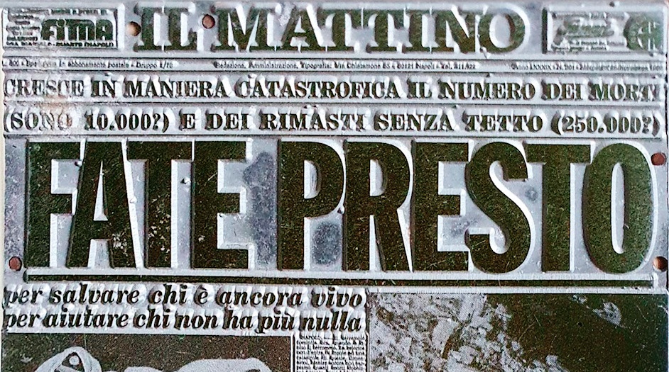 La prima pagina del Mattino di mercoledì 26 novembre 1980 nell’opera di Andy Wharol esposta al Moma di New York che riprende la pagina della nostra gloriosa testata che, a tre giorni dal terribile evento sismico dell’Irpinia, lancia un appello disperato. Quest’opera, in una riduzione multipla, mi venne regalata dal grande Direttore Roberto Ciuni, Maestro, Fratello ed Amico, innamorato di Capri che ha segnato molti anni della mia vita e che ha speso ogni ora del suo tempo dedicandosi a praticare il difficile mestiere di giornalista, trasferendo tutto il suo sapere anche a noi che giovani gli stavamo accanto.