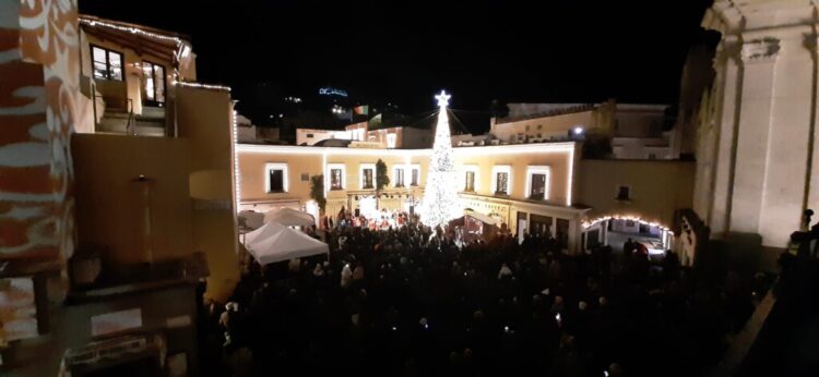 A Capri si illumina l’Albero in Piazzetta, scambio di auguri con gli amici della Val di Sole – photogallery