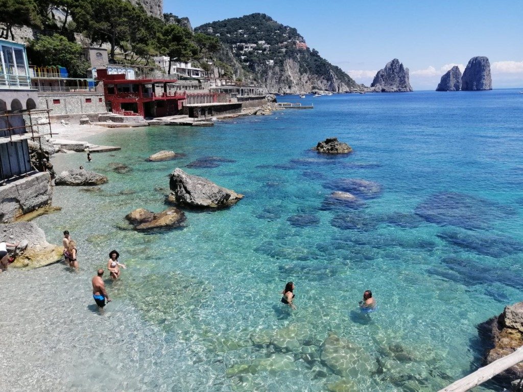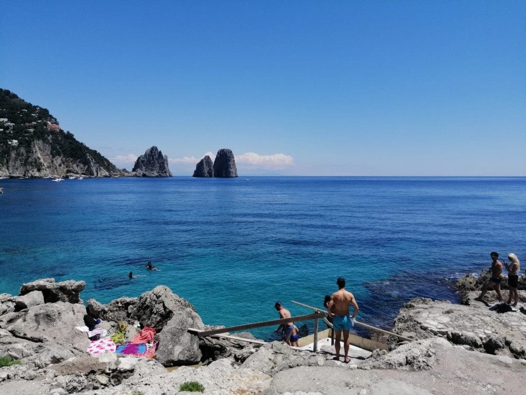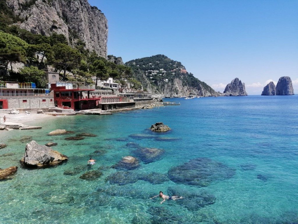 Le cale, le spiaggette a ridosso dei Faraglioni, sulla Baia di Marina Piccola hanno dei colori unici, nuance che vanno dal blu zaffiro all’azzurro, al verde acquamarina e sono tanti i coraggiosi bagnanti che si sono immersi in acqua o hanno approfittato delle calde temperature per qualche ora di tintarella, soprattutto sulla Baia dei Faraglioni nel versante sud-est dell’isola, uno dei più riparati dai venti.