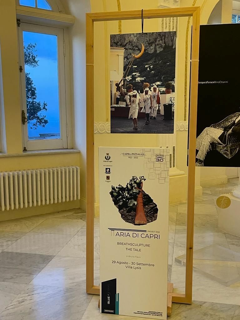 A Villa Lysis una mostra racconta la performance artistica organizzata dall’Associazione Polis 3.0 per la I edizione del progetto “ARIA DI CAPRI” Si è aperta il 29 agosto a Villa Lysis l’esposizione conclusiva della prima edizione del progetto “Aria di Capri” dell’associazione Polis 3.0. Il progetto “Aria di Capri” è stato ideato da Manuela Schiano e Bruno Flavio in continuità con il percorso “Blue&Green” iniziato nel 2019, dove innovazione tecnologica, cultura, economia si uniscono per guardare ad un futuro sostenibile. “Aria di Capri” vuol essere infatti un’iniziativa di innovazione culturale e sociale che evidenziando il ruolo millenario dell’isola di Capri quale luogo di ispirazione e laboratorio di innovazione per artisti, studiosi, scienziati, leader politici, filosofi etc , parte da Capri per poi diffondersi a livello internazionale attraverso la collaborazione con altri enti. Il nome scelto si ispira ad un famoso testo di Edwin Cerio, e il tema di questa prima edizione, il ‘paesaggio’, è un omaggio al Convegno che Cerio organizzò sull’isola nel 1922. Protagonisti della prima edizione gli artisti John Di Leva Halpern, Emily Harris, Margret Wibmer dell’Institute for Cultural Activism International di New York (ICAI).
