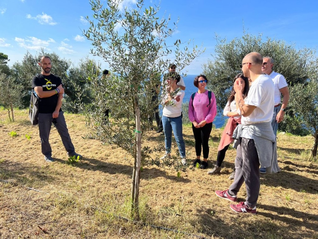 Dopo la degustazione ci si é spostati verso un’area di recente piantumazione di olivi, in un ex campetto di calcio che é stato restituito alla terra, con olivi piantati a febbraio 2022 dai ragazzi delle scuole elementari di Anacapri.