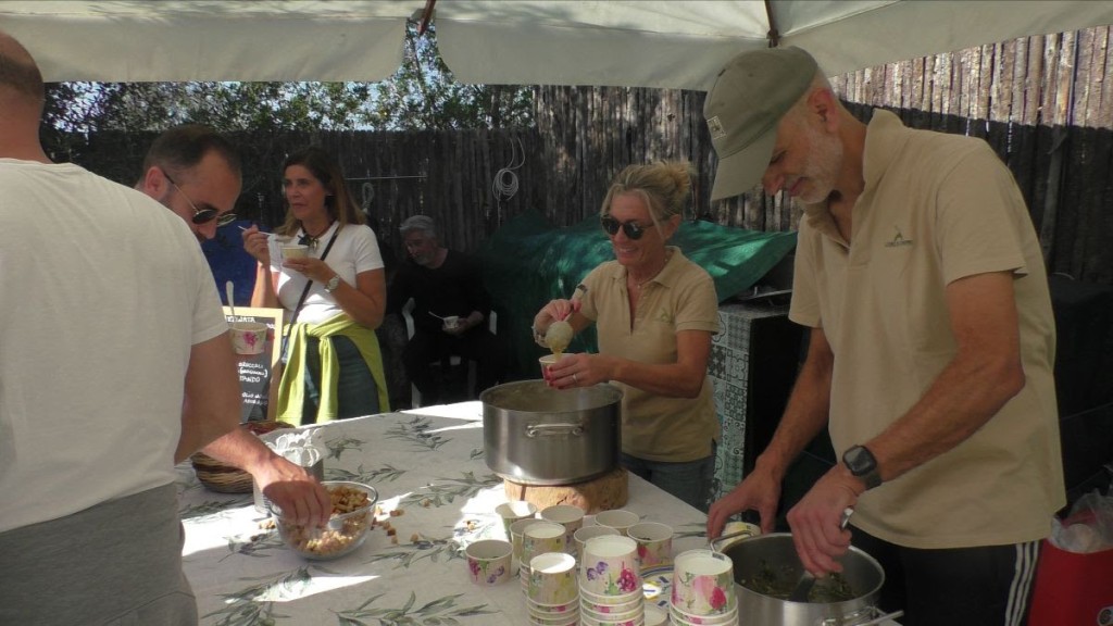Tappa successiva nell’uliveto di Pierpaolo e Alessandra Scoppa che hanno preparato nel loro incantevole terreno vista mare una vellutata di fave su fondo di broccoli, accompagnate da un pane fatto in casa con il loro prezioso olio, Armando, e del buon vino.
