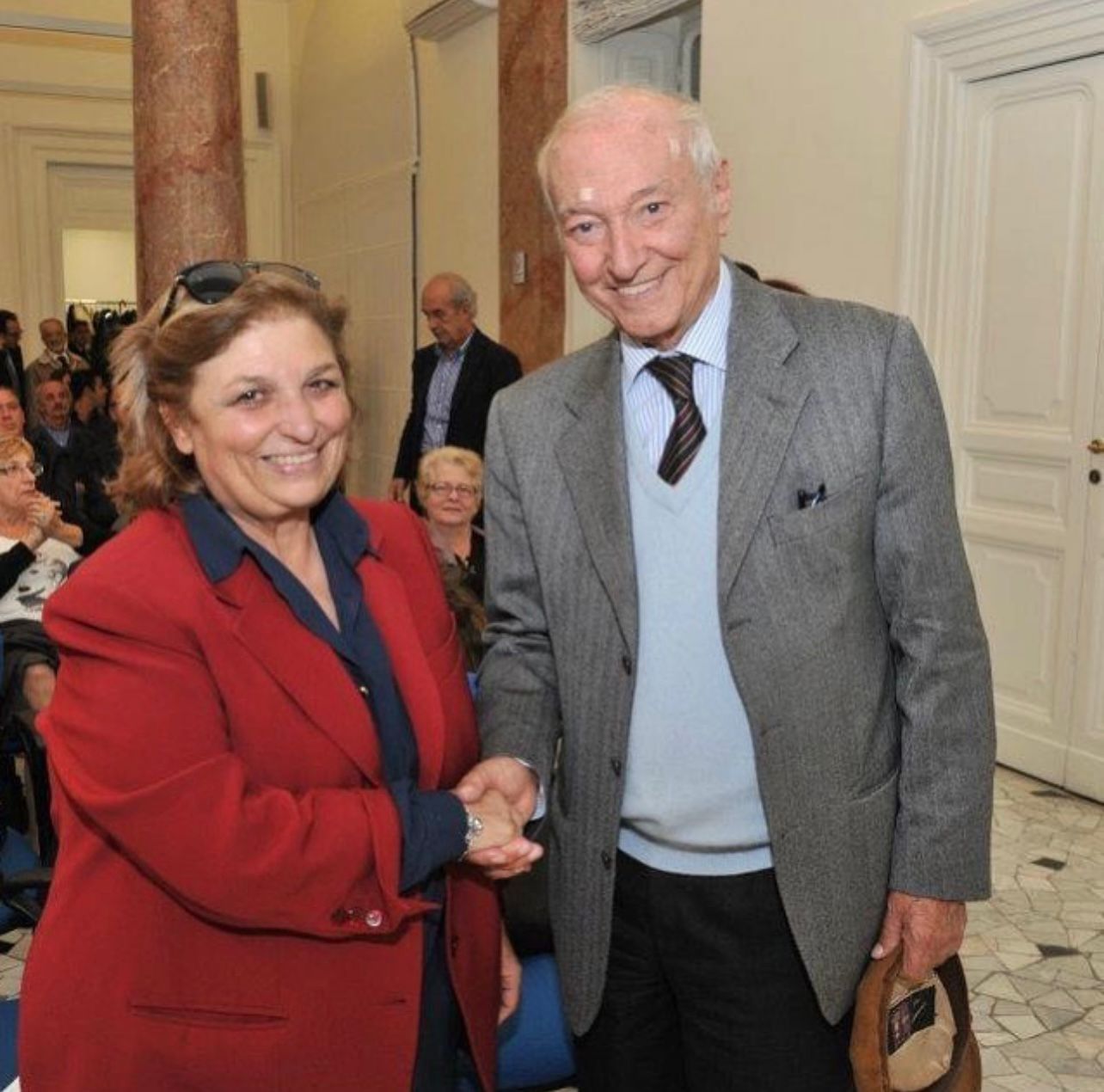 Addio a Piero Angela, illustre divulgatore scientifico, giornalista e conduttore televisivo. Qui in foto con Anna Maria Boniello, mentre ricevono a Roma il Premio “Prestigio Professionale Letizia Isaia” nella sede romana del palazzo della Regione Campania.