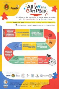 All You Can Play nasce come spazio di incontro, riflessione e sperimentazione sul gioco, nelle sue molteplici e variopinte forme, e sul suo valore positivo per la crescita e il benessere individuale e della società. Il nome richiama volutamente l’idea di all you can eat: un invito aperto e inclusivo a giocare, dove tutti possono trovare il proprio modo di partecipare e dove la varietà delle esperienze ludiche è una ricchezza condivisa. In questa edizione zero, coorganizzata da più realtà operanti sul territorio (Associazione Culturale Arcadia APS, Forum dei Giovani di Anacapri e di Capri, Sezione Scout CNGEI Isola di Capri, Cooperativa Onlus La Sciuscella di Anacapri, Associazione Capri Senza Barriere, ANFFAS Capri, Centro Caprense Ignazio Cerio, Museo di Villa Rosa e con il patrocinio del Comune di Anacapri), l’attenzione sarà rivolta al gioco da tavolo, sia nella sua dimensione più semplice e autentica di piacere e condivisione, sia come strumento educativo, aggregativo e relazionale. All you can play si basa sulla convinzione che il gioco sia una pratica culturale, educativa e sociale capace di generare benessere, relazioni e competenze: attraverso il gioco si apprendono regole, si sperimentano relazioni, si allenano autonomie e si costruisce senso di appartenenza. All You Can Play si terrà il 10 e 11 gennaio prossimi presso Villa Rosa di Anacapri in seno alla seconda edizione dell’encomiabile iniziativa degli Anacapri Winter Games organizzati dal forum dei giovani di Anacapri. L’iniziativa è resa possibile grazie alla disponibilità di Gabriele Mari a condividere con la comunità caprese la propria grande esperienza sul campo e competenze. Gabriele Mari, proveniente da Ravenna, è una figura di riferimento nel mondo dei giochi da tavolo e dell’educazione ludica in Italia, formatore anche per Erickson, autore del libro “Tuttingioco: il gioco strutturato come strumento educativo” e noto game designer di più di 20 giochi, alcuni tradotti in una dozzina di lingue tra cui Lettere da Whitechapel, Raccontami una storia, A caccia di conchiglie.