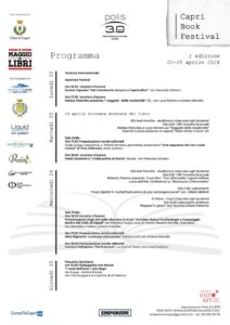Il festival si aprirà il pomeriggio del 22 aprile, nella cornice della Terrazza internazionale, con due Incontri d’autore, il primo con un autore caprese, Renato Esposito, che racconterà al pubblico  la genesi di due testi dedicati all’isola e al suo genius loci,  il Camaleonte Azzurro e Capritudine, delle Edizioni La Conchiglia; il secondo con Matteo Palumbo, professore di Letteratura italiana presso l’Università di Napoli Federico II, che presenterà insieme a Luca Ferraro e Andrea Manzillo il suo ultimo saggio dedicato ai più importanti esponenti del Romanzo italiano tra Ottocento e Novecento: Verga, Tozzi, Pirandello, Svevo, I soggetti della modernità, ES.