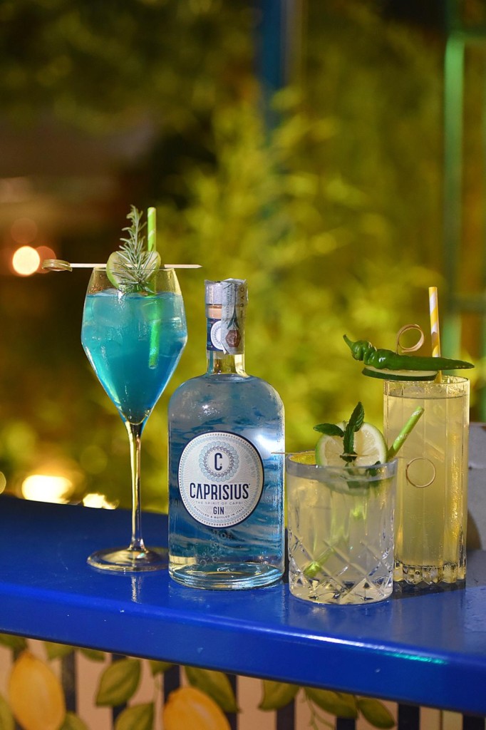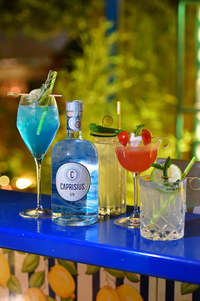 La gin mania ha portato così a realizzare sabato scorso una serata proprio a tema Caprisius Gin al VV Lounge, l’area garden del ristorante Villa Verde che, questa estate, con la direzione di Giordana Lembo, sta promuovendo delle serate tutti i sabati all’insegna dei sapori capresi. L’happening ha visto il Lounge animarsi grazie alla presenza di esperti bartender come Antonio Russo, che vanta un’ esperienza pluriennale al Grand Hotel Quisisana, con special guest Jacopo Saporito, tra i top blogger del mondo dei drink, con la sua pagina Gin Tonic Italy, sponsor della serata. Per l’occasione Luca Stabile, ideatore e produttore del Caprisius Gin ha fatto realizzare una serie di cocktail tematici che stanno spopolando nell’estate caprese, tra questi il “Caprese Martini”, a base di gin e succo di pomodoro, e anche il “Capri Mule”, una versione rivisitata di uno dei drink più amati dai giovani come il Moscow Mule, con il gin al posto della vodka; il drink sta diventando attraverso un tam tam sui social un vero e proprio must dell’estate.