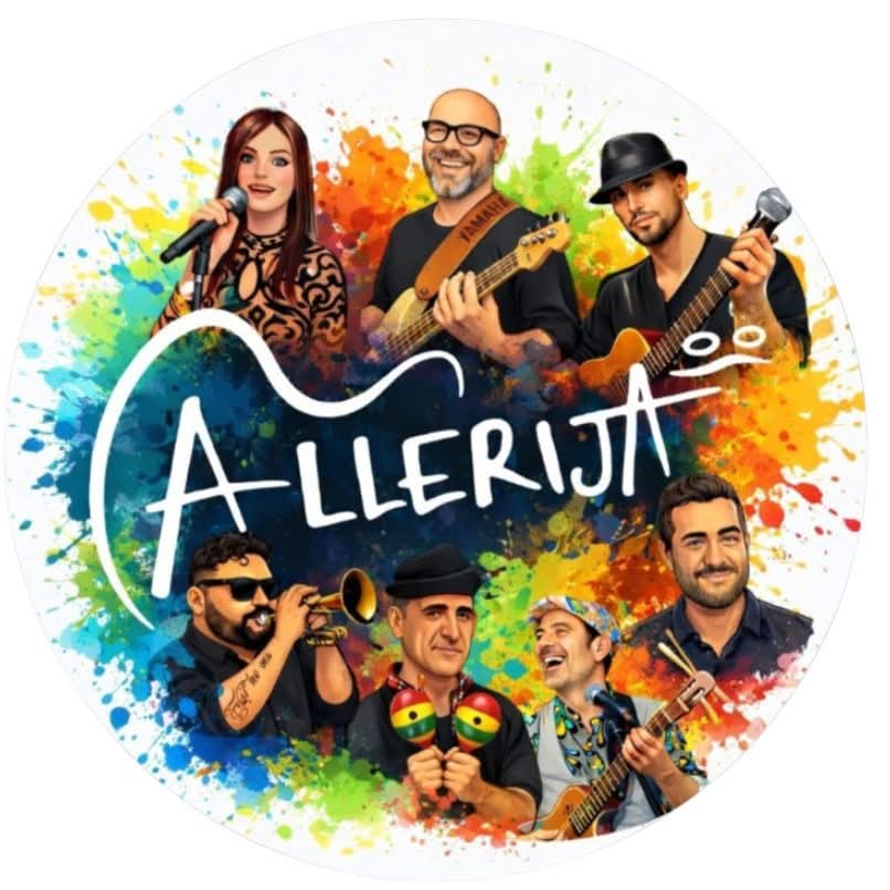 La band. Gli Allerija sono un gruppo che continua a distinguersi per il talento e l’energia delle proprie performance. Formato da Eugenio Solla (Voce), Gianluca Mazza (Chitarra e Voce), Maria Rosaria Diva Cavaliere (Voce), Francesco Cico Schettino (Percussioni), Antonio Saturno Mexico (Tromba), Giovanni Volpe Fox (Batteria) e Girolamo Scarpa (Basso).