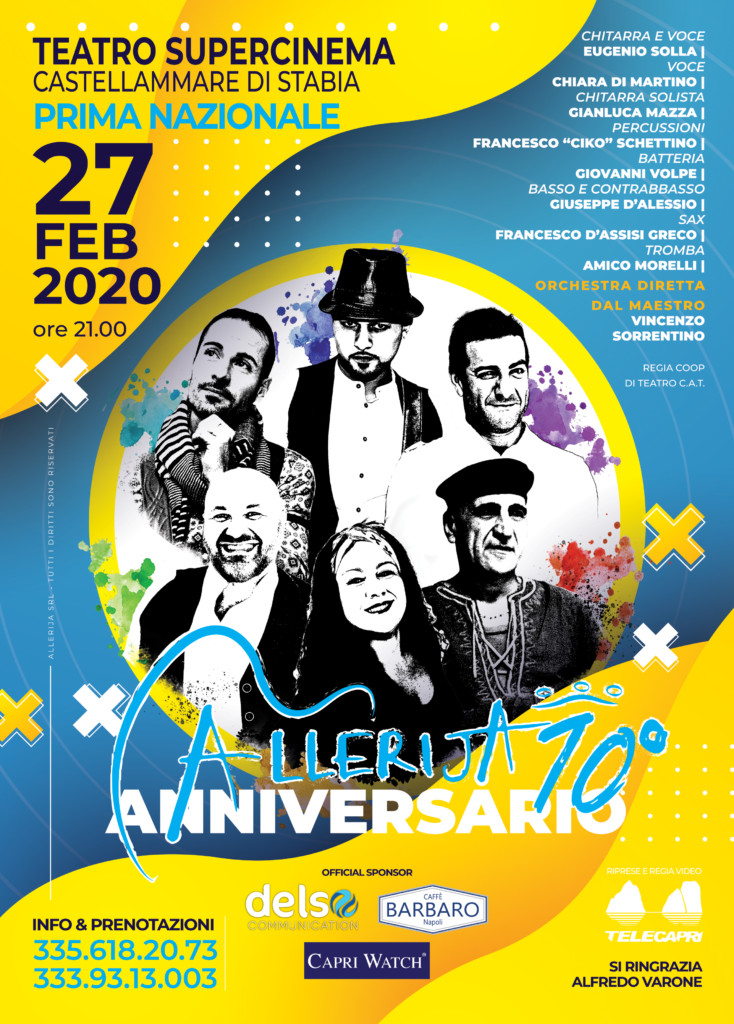 Domani sera 27 Febbraio alle 21.00, la band caprese Allerija presenterà il suo nuovo spettacolo “Allerija…in un sogno”, per la prima volta in scena al teatro Supercinema di Castellammare di Stabia.