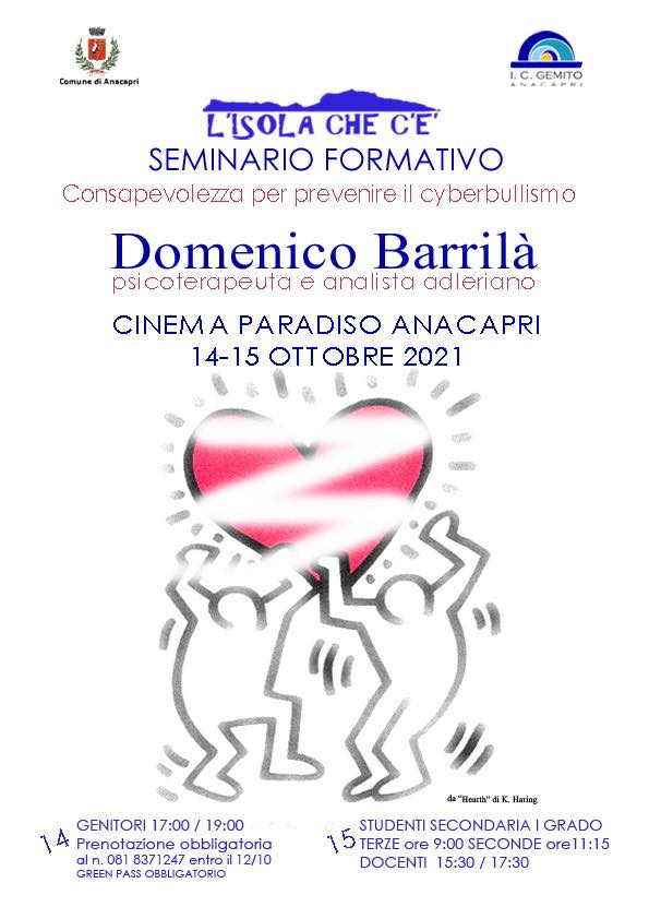Il 14 e il 15 ottobre si terrà un seminario informativo sul cyberbullismo che prevede 3 incontri. L’evento curato dall’Istituto Gemito, in collaborazione con il nostro Comune, si terrà nella sala ipogea del Centro Polifunzionale “Paradiso”. Nella locandina, allegata, tutte le informazioni per la partecipazione.
