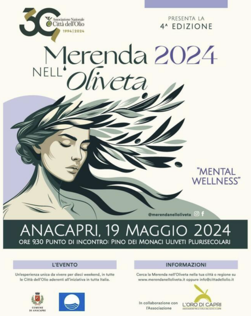 Anacapri green inserita nelle città dell’olio con l’associazione degli ulivisti de L’Oro di Capri, ha rinnovato il rito della Merenda nell’oliveta. Infatti, nella mattinata di domenica 19 Maggio negli uliveti plurisecolari della località Pino dei Monaci, nei pressi del Fortino di Pino ad Anacapri, si è tenuta la 4ª edizione della Merenda nell’oliveta. Ad organizzare l’evento l’associazione L’Oro di Capri in collaborazione con Città dell’olio. Il percorso è stato guidato dal coordinatore del progetto dell’Oro di Capri ed esperto di paesaggio, il Dr. Carlo Lelj Garolla, che ha condotto il gruppo di appassionati di olivicoltura in un percorso all’interno dei terreni dell’associazione, attraverso varie zone a macchia e zone terrazzate dove è stata ripristinata la coltivazione dell’olivo. Grande interesse ha destato l’area di Cannula con una serie di muretti a secco di centenaria costruzione. Il percorso che ha condotto fino ad aree limitrofe al fortino di Mesola, con una meravigliosa vista sul mare, ha portato il gruppo alla visione di alcuni alberi di olivo centenari. La passeggiata è proseguita poi verso alberi di recente piantumazione, grazie ai progetti scolastici seguiti dall’oro di Capri che hanno coinvolto i bambini delle scuole primarie dell’isola. Al termine del percorso, si è tenuto un momento di raccoglimento collettivo con la respirazione e i suoni dello yoga a cura dell’associazione Capri Yoga Lab. I soci de L’oro di Capri a conclusione della lunga e rigenerante passeggiata tra gli ulivi, ha offerto ai partecipanti una degustazione con prodotti a base di olio.