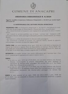 Anacapri: Ordinanza del Comune sulla sosta dei veicoli in occasione del G7