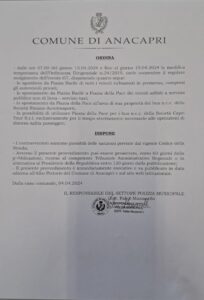Fonte: Pagina Istituzionale Facebook  – Comune di Anacapri
