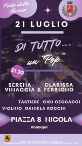 Anacapri: Piazza San Nicola si trasforma in un raffinato teatro all’aperto con la festa della musica “Di tutto un Pop”, domani 21 luglio dalla ore 21.30