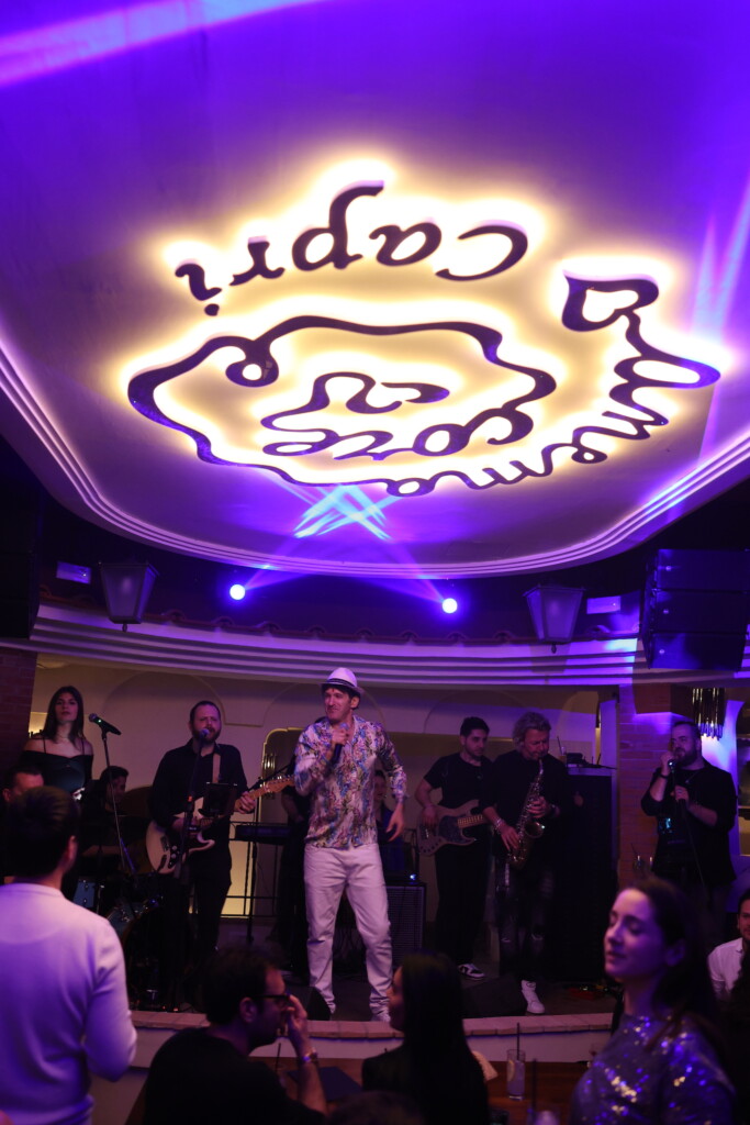 E le prime sere di apertura hanno visto proprio sotto questa scritta luminosa Gianluigi Lembo e la sua band, di ritorno da un lungo tour invernale , intrattenere habitué, vacanzieri, isolani che non vedevano l’ora di tornare a far festa al ritmo di Anema e Core.