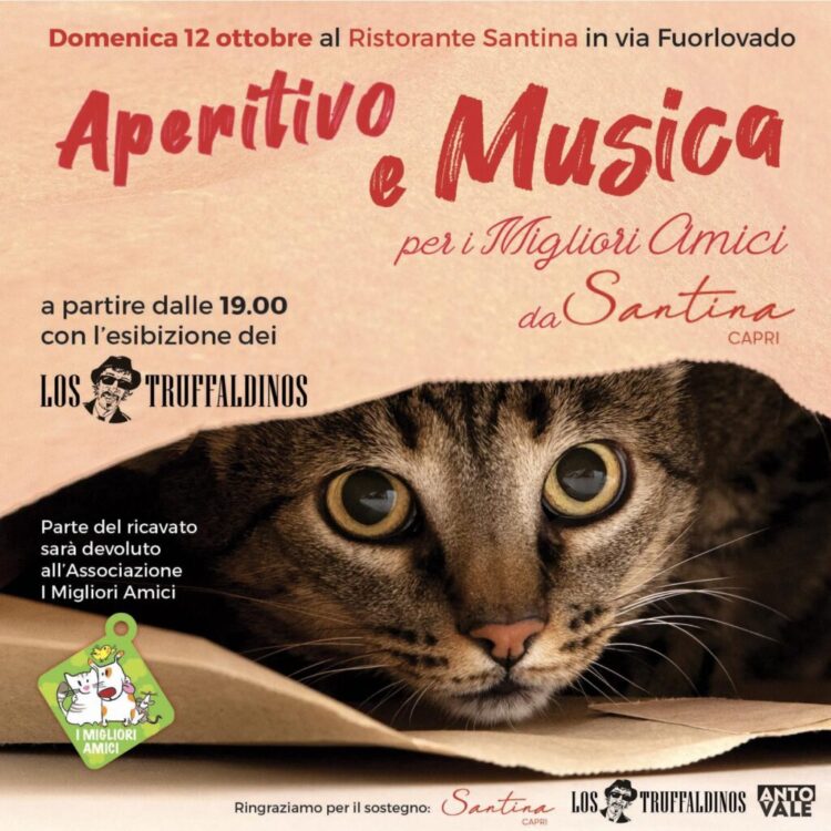 Una serata dal sapore caprese, tra musica dal vivo dei Los Truffaldinos e un brindisi solidale a favore dell’associazione I Migliori Amici, che si prende cura dei nostri amici a quattro zampe 🐾