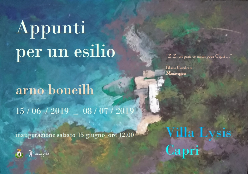 Inaugura domani sabato 15 giugno ore 12 a Villa Lysis la personale di Arno Boueilh ” Appunti per un esilio”.