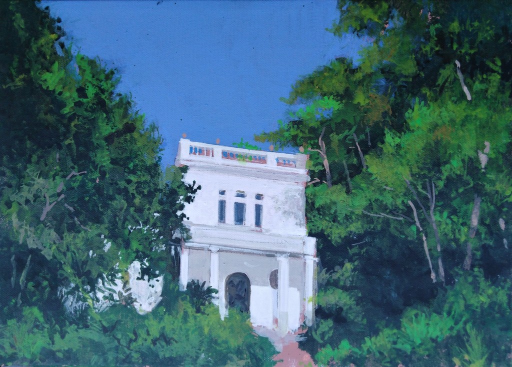 La mostra presenta una serie di scorci dell’isola, tempere su tela e panello esposte all’interno del panoramico salone della Villa.