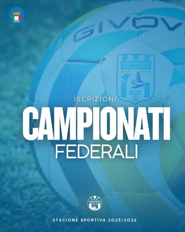 Con una comunicazione arrivata attraverso le pagine Social della Società, l’Asd Anacapri del Presidente Adalberto Cuomo, ha reso noto i campionati federali ai quali parteciperà nella stagione 2025/2026.