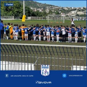 Per la leva 2013 dell’Asd Anacapri allenata da Mister Francesco l’ultimo fine settimana appena trascorso resterà uno di quelli da ricordare. I ragazzi isolani hanno, infatti, avuto l’opportunità di partecipare all’Ischia Cup, kermesse calcistica giovanile alla quale hanno preso parte club professionistici quali Juventus e Inter. Proprio contro l’Inter i ragazzi dell’Asd Anacapri hanno disputato un grande match uscendo dal campo sconfitti di misura e ottenendo grande consenso dei presenti al terreno di gioco. L’Ischia Cup non è solo calcio, lo stupendo scenario dell’isola sorella ha permesso alla comitiva di passare ore di relax e divertimento insieme anche a tanti genitori che si sono aggiunti al gruppo per le fasi finali del torneo disputatosi domenica mattina.