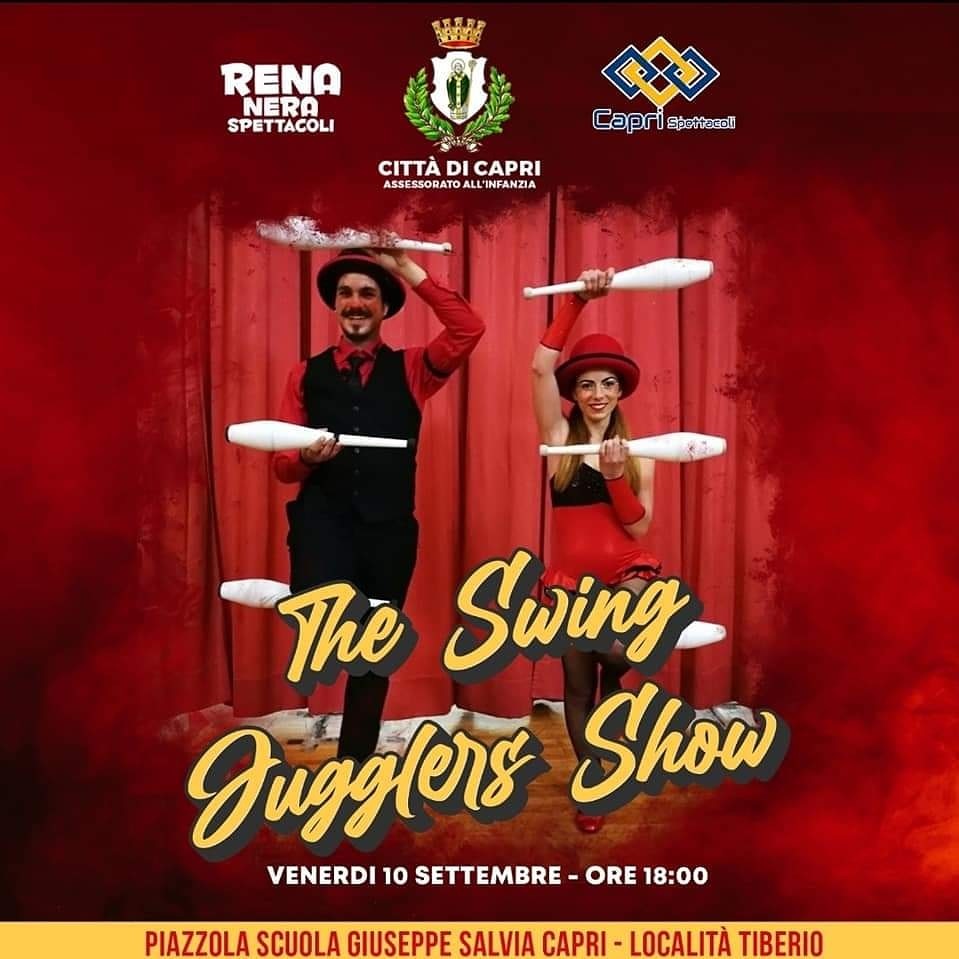 Continuano gli appuntamenti dedicati ai piu’ piccini che l’ Assessorato all’ Infanzia della citta’ di Capri presieduto dal dott. Salvatore Ciuccio sta organizzando con il supporto Artistico della Capri Spettacoli, Allo 18:00 di Venerdi 10 Settembre presso la piazzola della Scuola Elementare “Giuseppe Salvia” sara’ la volta del duo Valerio Sklero e Zaira Morgan con lo show “The Swing Jungler Show” che allieteranno il giovane pubblico con i loro numeri di giocoleria…e non solo
