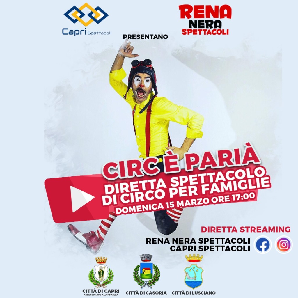 Gli eventi per i più piccoli che si svolgevano nella Tendostruttura dei Giardini della Flora Caprense, sono stati sospesi dopo il decreto del 4 marzo fino al 3 aprile ma la Capri Spettacoli ha avuto l’ idea di continuarli on line, anche grazie all’ appoggio dell’Assessore all’Infanzia della Città di Capri, Salvatore Ciuccio con cui è stato deciso di organizzare un primo evento per oggi domenica 15 Marzo alle 17.