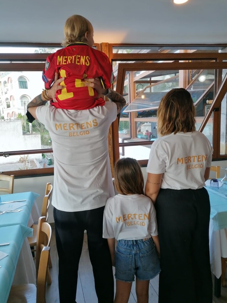 Al ristorante il Verginiello a pochi passi dalla piazzetta di Capri, nel corso della partita Belgio-Italia il proprietario Luigi ha tifato Mertens insieme alla sua famiglia e un gruppo del personale che indossavano la maglietta con il nome Mertens sul dorso. Il più piccolo di casa poco più di un anno di età indossava addirittura la maglia rossa del Belgio con il nome Mertens sulla schiena. Un nome che gli familiare perché suo padre Luigi, patron del locale lo ha battezzato dandogli il nome del suo amico Dries Mertens. Magliette anche dell’ Italia per par conditio sono state distribuite al personale ma Luigi e famiglia hanno tifato solo per il loro amico Mertens. Italiano invece è stato il tifo dei clienti che hanno seguito la competizione trasmessa sul maxi schermo piazzato nella sala del locale.