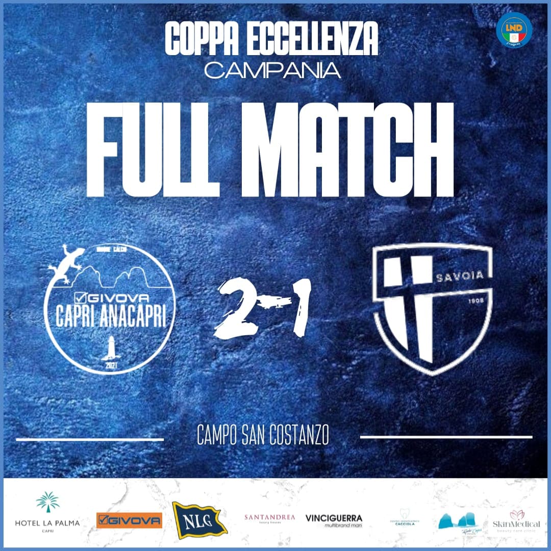 Al San Costanzo il Givova Capri Anacapri batte 2 a 1 il Savoia nel ritorno degli ottavi di finale di Coppa ed ottiene un risultato che oltre al prestigio restituisce fiducia ed autostima, nonostante non sia sufficiente per passare il turno.