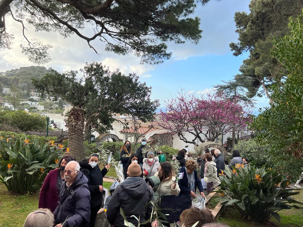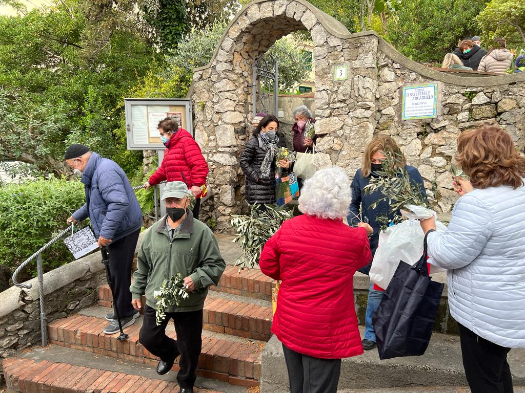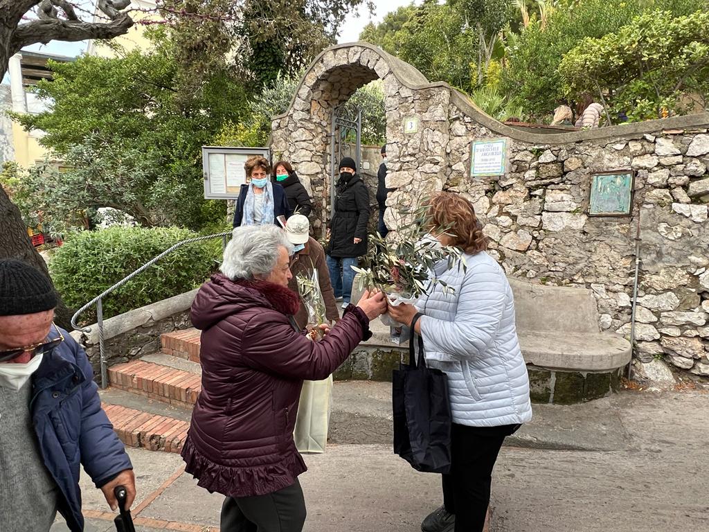 Torna la benedizione delle palme a Capri, dopo due anni di stop dovute alle norme anti Covid, all’aperto, il rito della benedizione delle palme, nel tipico spazio verde all’esterno della chiesetta di San Michele che apre la strada che conduce a Villa Jovis, a Tiberio . Prima della messa che è stata celebrata da Don Nello il giovane sacerdote molto amato dai ragazzi e dalla comunità isolana, dopo la benedizione del simbolico rametto d’ulivo, nel caratteristico giardino-orto che circonda la piccola antica struttura religiosa, ha celebrato poi all’interno della chiesetta la messa della Domenica delle Palme leggendo le pagine del Vangelo colme di parole di speranza e di pace. Circa un centinaio di fedeli non hanno fatto mancare la loro partecipazione, in un angolo religioso dell’isola così ricco di storia e suggestivo. Dopo la celebrazione della messa sulla strada di Tiberio c’è stato lo scambio del rametto di pace tra i fedeli che hanno rivolto pensieri di pace verso l’Ucraina che sta vivendo i momenti tragici della guerra, tra i fedeli presenti alla cerimonia c’erano anche tanti cittadini della Comunità Ucraina che vivono e lavorano a Capri.