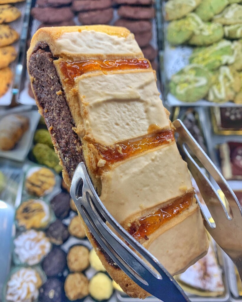 La storia non tradisce, il biscotto all’amarena è made in Napoli e dintorni, orgogliosamente campano, terra per eccellenza dove immancabilmente si incontra in ogni pasticceria, bar, ma anche nei forni-panetterie ben forniti. Insomma dal lunedì alla domenica, in “vetrina” c’è sempre il biscotto all’amarena anche “mignon” per fare compagnia al caffè. E se è vero come raccontano gli avi della pasticceria che questo biscotto con glassa “rigata” in marmellata, miele, caramello o semplicemente “zucchero cotto” e fatto da un ripieno “nero” dal retrogusto tra il cioccolato e l’amarena, ricavato dal riutilizzo di quello che avanza in pasticceria e dallo smaltimento di ritagli di altri dolci, torte, pan di spagna e pasticcini, il post Pasqua ispira per quelli che molti definiscono “il napoletano” indicandolo come “biscotto napoletano”, il meglio della vetrina di presentazione dei dolci del periodo.