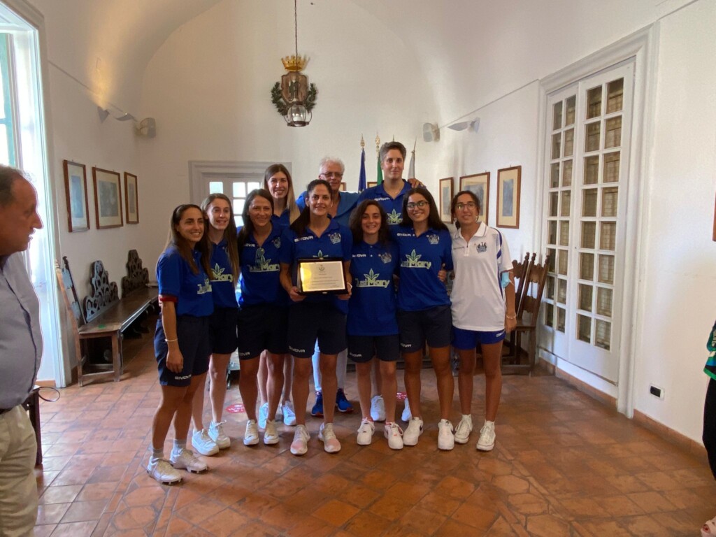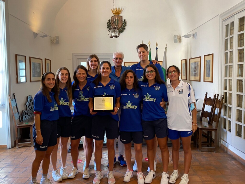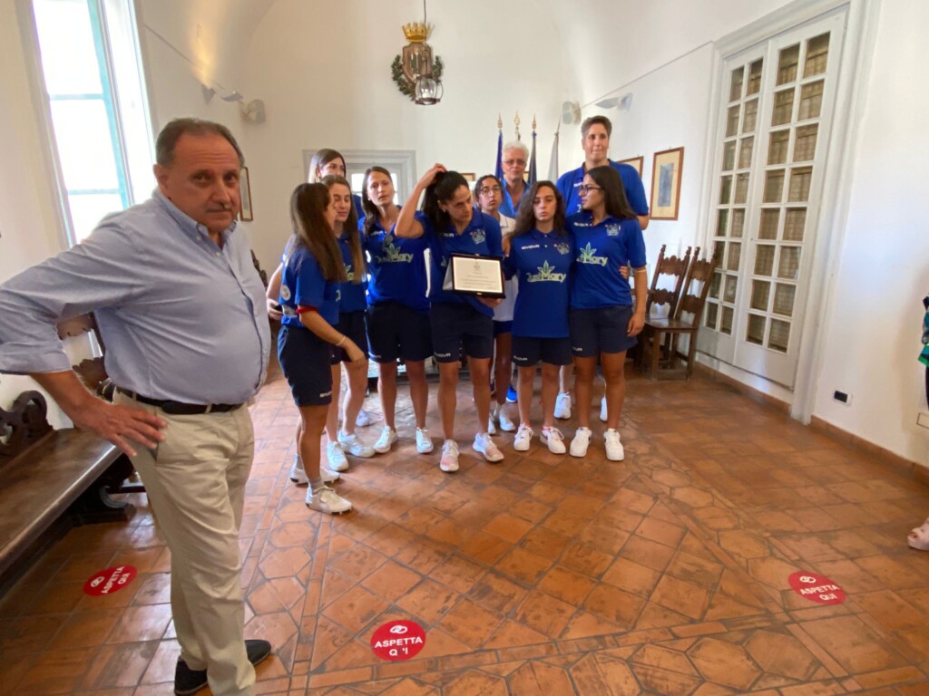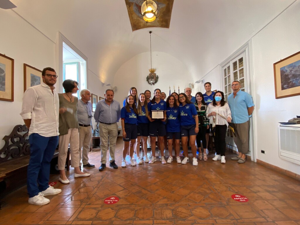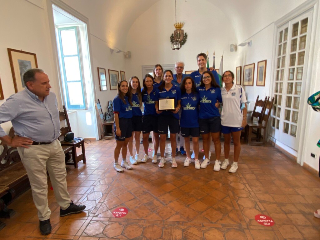 Oggi pomeriggio sentita cerimonia in Comune per festeggiare la squadra di basket femminile caprese, la Blue Lizard Capri (Lucertola Azzurra), che ieri in un’accesa finale ha battuto Costa Masnaga per 85 a 70 raggiungendo una storica promozione nelle serie A2 femminile di basket. A ricevere la targa che il Comune ha voluto regalare a questo straordinario team caprese è stato il Sindaco Marino Lembo ed il vice Sindaco ed Assessore allo sport Ciro Lembo unitamente alla Giunta che ha dato ufficialità ad un traguardo che è stato raggiunto con grandi sforzi dalla Blue Lizard Capri che in pieno covid ha dovuto sottoporsi a notevoli difficoltà specie per i trasferimenti dall’isola alla terraferma. Oggi però nella sala consiliare del Comune di Capri le ragazze della Blue Lizard hanno festeggiato e già stanno pensando agguerrite al prossimo campionato che dovranno affrontare con la stessa grinta che le ha portate a questa storica promozione.