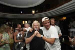 L’ex premier britannico Boris Johnson ieri notte all’Anema e Core: un arrivo a sopresa intorno a mezzanotte in compagnia della moglie ed alcuni amici. Il politico inglese si è da subito lasciato trasportare dal ritmo della Taverna caprese sulle note dei classici della tradizione napoletana, e di brani come  “ Stand by me”, “ Hey Jude” “ Mamma mia”, “ Sweet Caroline”. In suo onore è stato intonato l’inno inglese, con tanto di bandierine sventolanti , alcune delle quali  personalizzate con il suo volto sopra. Socievole e disponibile con tutti, Johnson si è concesso varie foto con il patron Gianluigi Lembo.