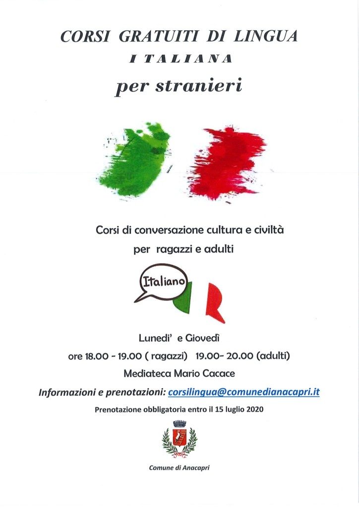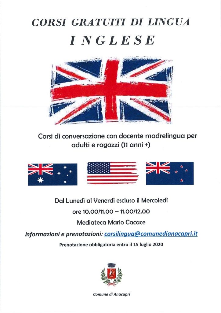 Le iscrizioni dovranno pervenire entro il 15 luglio p.v. compilando la scheda che si allega e inviandola a: corsilingua@comunedianacapri.it