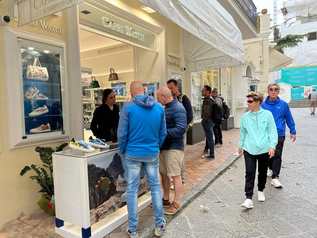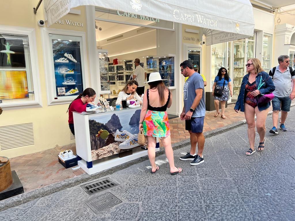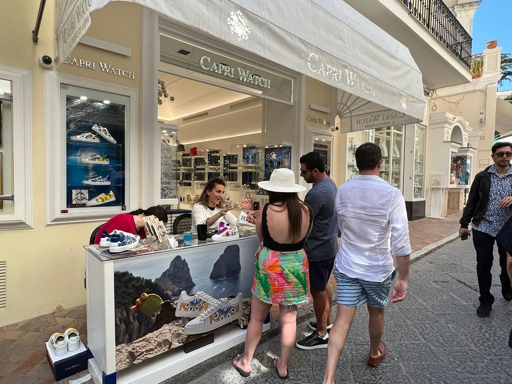 Ed il CEO Staiano tenendo fede alla sua filosofia di vita, ha voltato le spalle al passato senza guardarsi indietro, proiettandosi già nel futuro verso il quale si affaccia, lanciando nuove sfide, con l’ottimismo che lo distingue e la frenetica eccitazione dovuta alla nuova impresa nella sede del terzo millennio in Via Quisisana, dove già ha iniziato a raccogliere i suoi primi successi, per lo stile, l’innovazione e per aver riportato “in strada”, sul marciapiede antistante la sua boutique, un banchetto artistico e artigianale come accadeva nella Capri della dolce Vita, impegnando ben 3 artiste che all’istante decorano e dipingono sulle scarpe sneaker griffate Capri Watch (ultima sua invenzione) i disegni creati da Capri Watch e, talvolta, seguendo le richieste del cliente, o uno scorcio caratteristico di Capri, il proprio nome o quello della persona amata.