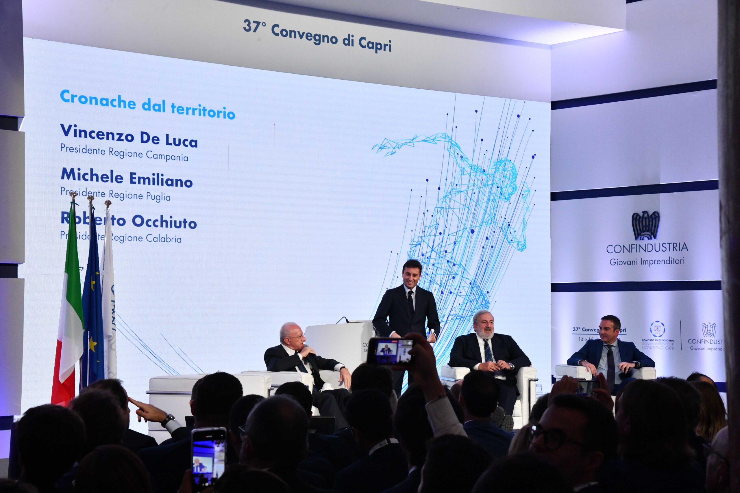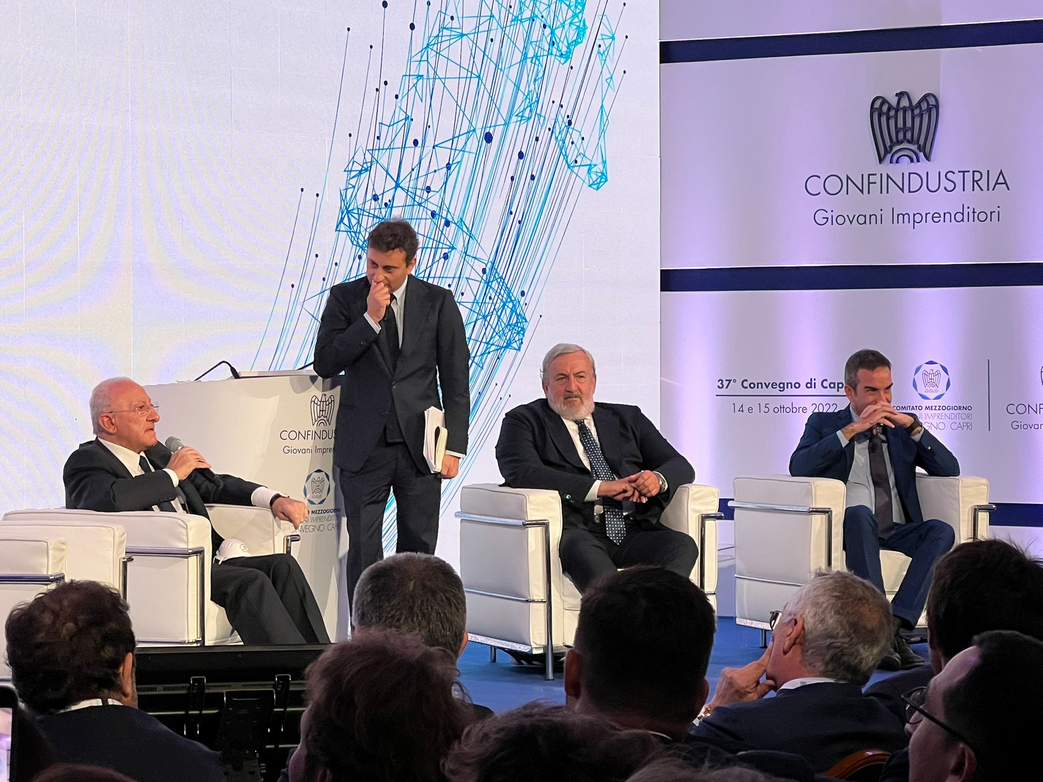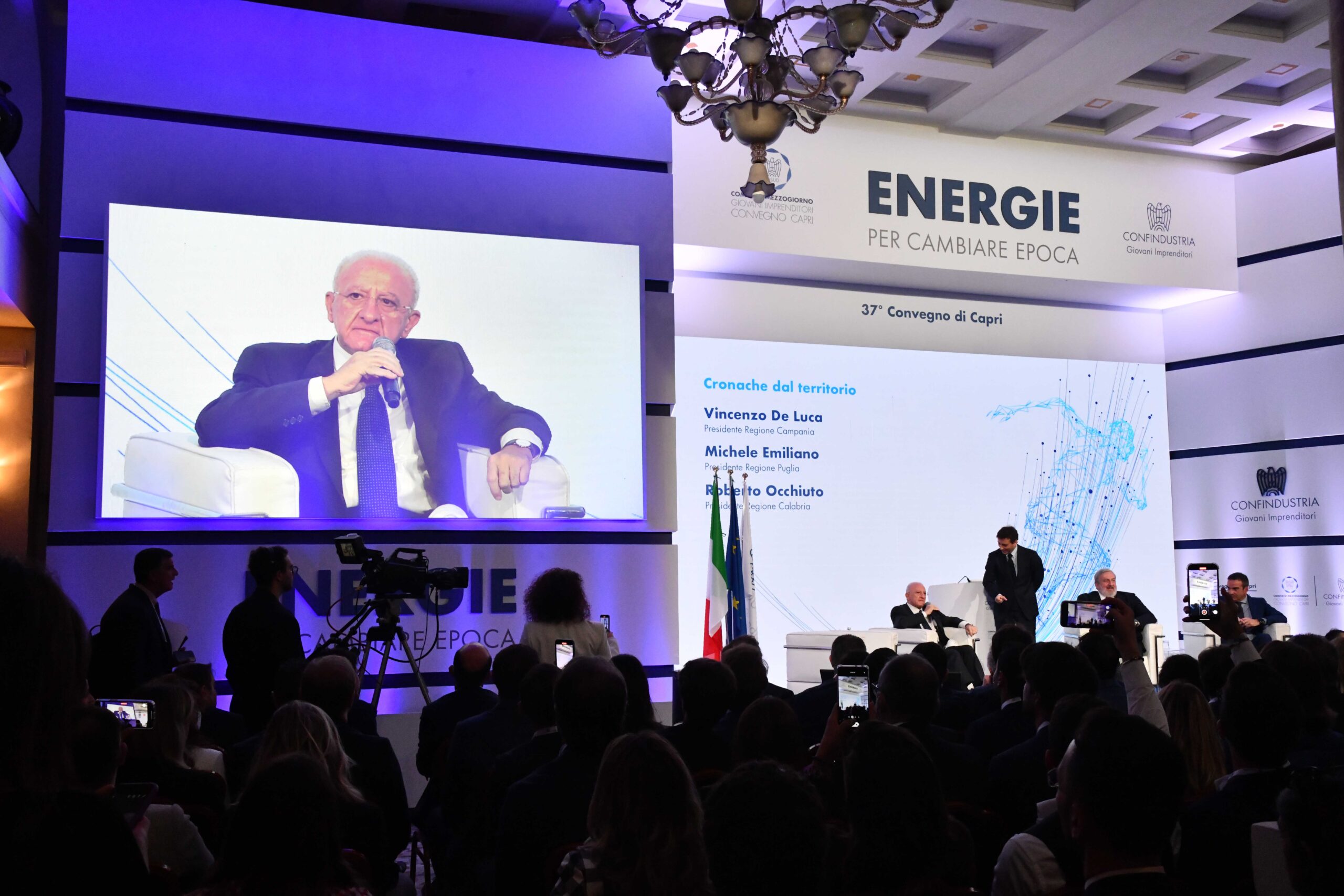 Il 37esimo convegno dei Giovani Industriali è stato tutto incentrato sull’energia e le sue innovazioni, che per due giorni ha trasformato il Grand Hotel Quisisana, sede storica del convegno, in un vero e proprio polo economico, lanciando ed accogliendo dalla platea idee, iniziative e progetti sul futuro energetico ed economico del nuovo mondo. Quest’anno sono stati inviati i tre presidenti regionali delle regioni del mezzogiorno: per la Campania Vincenzo De Luca, per la Puglia Michele Emiliano e per la Calabria Roberto Occhiuto, che sono stati accolti dalle autorità presenti sull’isola. Il Presidente De Luca è stato ricevuto dal vicesindaco Ciro Lembo, accompagnato dal comandante della Polizia Municipale Daniele De Marini. Il convegno che è stato aperto ieri con l’intervento del Presidente G.I. Confindustria Campania Vittorio Ciotola e Riccardo Di Stefano Presidente Giovani Imprenditori Confindustria, si è concluso oggi pomeriggio con i significativi interventi e moniti dal presidente di Confindustria. A moderare il dibattito tra i tre presidenti regionali il giornalista David Parenzo. Si è conclusa così la 37esima edizione ed i giovani industriali si sono dati appuntamento, ovviamente a Capri, per la prossima edizione del 2023.