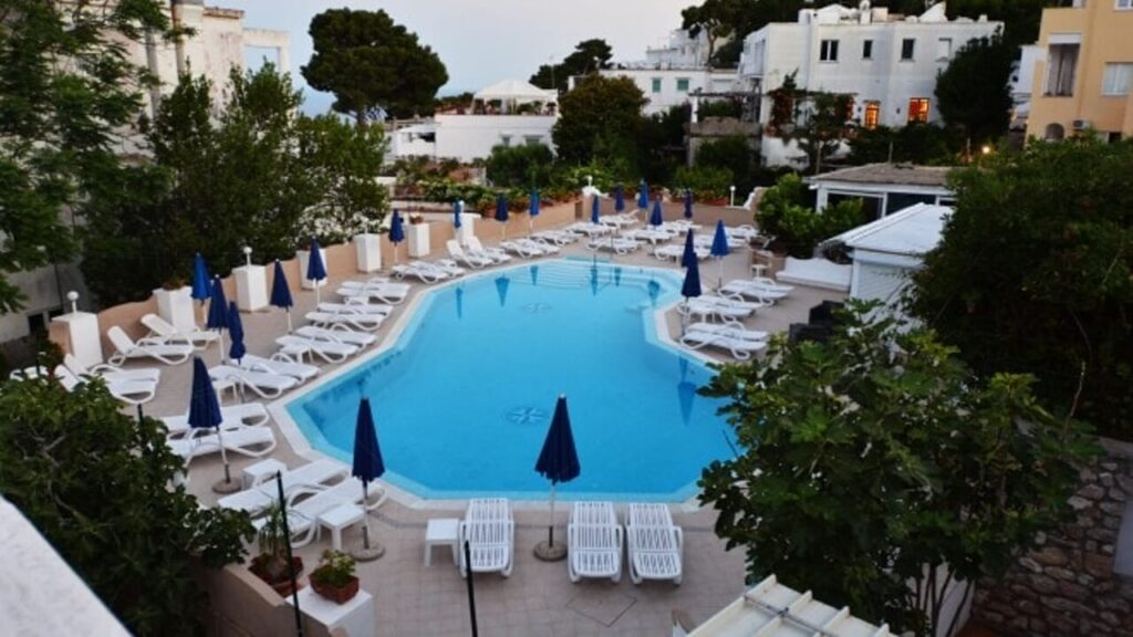 L’Hotel Villa Sanfelice, 4 stelle, è un vero gioiello in elegante stile caprese che si trova a circa 200 metri dal Quisisana e a poco meno di 300 metri dalla Piazzetta. piscina con solarium, panorama da sogno e giardino fiorito tra i più ammirati dell’isola su cui affaccia la maggior parte delle 38 camere dell’hotel, dotate di terrazzino e, chiaramente, ogni comfort.