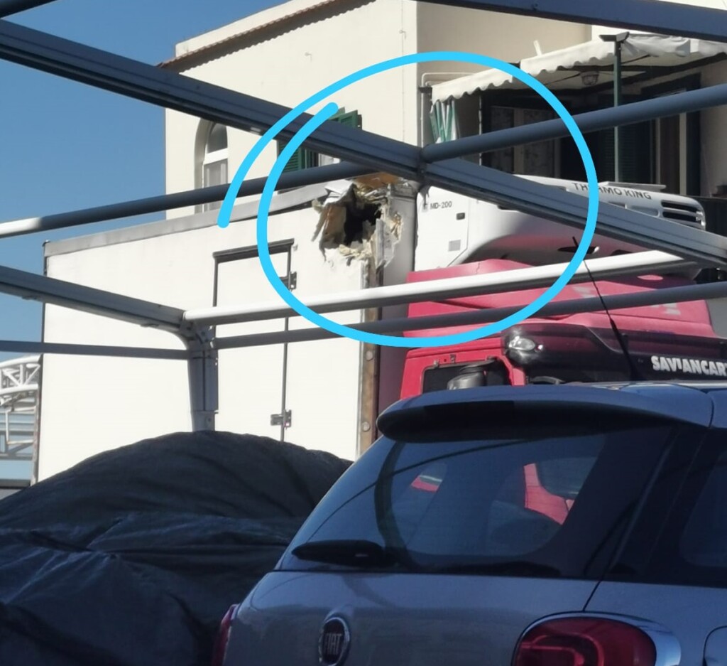 Un camion frigorifero di grosse dimensioni per il trasporto merci alimentari in procinto di raggiungere il porto e imbarcarsi per Napoli, oggi pomeriggio ha urtato con il cassone e quasi demolito il balcone terrazzo dello storico hotel Belvedere & Tre Re lungo la provinciale Capri – Marina Grande.