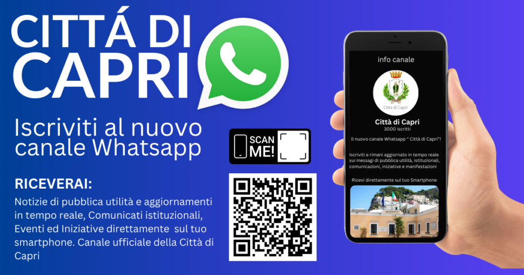LA CITTÀ DI CAPRI LANCIA IL CANALE WHATSAPP, UN MODO SEMPLICE E DIRETTO PER RICEVERE NOTIZIE DI PUBBLICA UTILITÀ E AGGIORNAMENTI IN TEMPO REALE