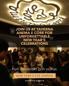 La Taverna Anema e Core si appresta a riaprire le sue porte il 27 dicembre, pronta ad accogliere le festività e la 30ª edizione di Capri Hollywood – The International Film Festival, la rassegna ideata da Pascal Vicedomini che ogni anno porta sull’isola ospiti e protagonisti del cinema internazionale. Fino al 31 dicembre, la Taverna accoglierà habitué, vacanzieri e celebrità del Festival in vista del tradizionale Capodanno all’Anema e Core, con il cenone e lo spettacolo musicale che da decenni accompagna l’arrivo del nuovo anno. Nel programma degli eventi della Città di Capri torna anche l’appuntamento con l’“Anema e Core Show” in Piazzetta: il 30 dicembre alle ore 19, Gianluigi Lembo e la sua orchestra animeranno il cuore dell’isola con il concerto preludio al Capodanno che trasformerà il salotto del mondo in una festa collettiva, tra i grandi classici della tradizione, energia coinvolgente e l’inconfondibile atmosfera caprese. La riapertura segue un mese ricco di impegni per l’Anema e Core Band, di ritorno dal tour che ha toccato alcune delle principali città italiane – Cortina, Milano, Roma, Napoli, Rimini – per feste ed eventi privati, e che prevede una tappa internazionale in programma a Saint Moritz. «Riaprire la Taverna per le feste è sempre come rientrare a casa» commenta Gianluigi Lembo. « Il periodo di Capodanno porta con sé un entusiasmo speciale. Il concerto in Piazzetta era un sogno di mio padre Guido e ogni volta è come rendergli omaggio. Siamo felici inoltre di essere parte della kermesse Capri Hollywood che porta sull’isola un’atmosfera internazionale e si intreccia perfettamente con la nostra tradizione.»