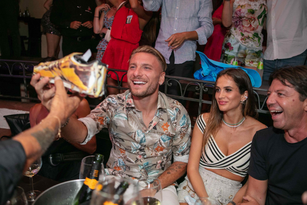 A Capri mancano i turisti americani, inglesi e francesi, e sono pochi i tedeschi, ma non calano le presenze dei divi del calcio. Un legame con l’ Isola Azzurra che continua anche nel periodo post Covid, quando i calciatori di ogni nazione, ma in particolare gli italiani, arrivano a Capri per tuffarsi, a fine campionato, nelle notti canore all’ Anema e Core, dove ieri sera, per la gioia degli sportivi, è sceso l’ attaccante della Lazio e della Nazionale, Ciro Immobile. Seduto al tavolo di fronte alla band, in compagnia della moglie, Jessica Malena , Immobile si è lasciato trasportare dall’ energia e dal ritmo del tempio del divertimento made in Capri. Tra i tanti gadget in suo onore, anche la mitica “scarpa d’ oro”, simbolo del titolo di miglior marcatore d’ Europa, da poco ricevuto dal bomber italiano a coronamento di una stagione calcistica straordinaria. Immobile ha poi raggiunto Gianluigi Lembo, con cui ha cantato l’ Inno Nazionale e l’ immortale “We are the Champions”. Bottiglia e mascherina personalizzate anche per Mattia Bani e Riccardo Gagliolo, i due difensori rispettivamente del Bologna e del Parma, anche loro in compagnia delle loro fidanzate.