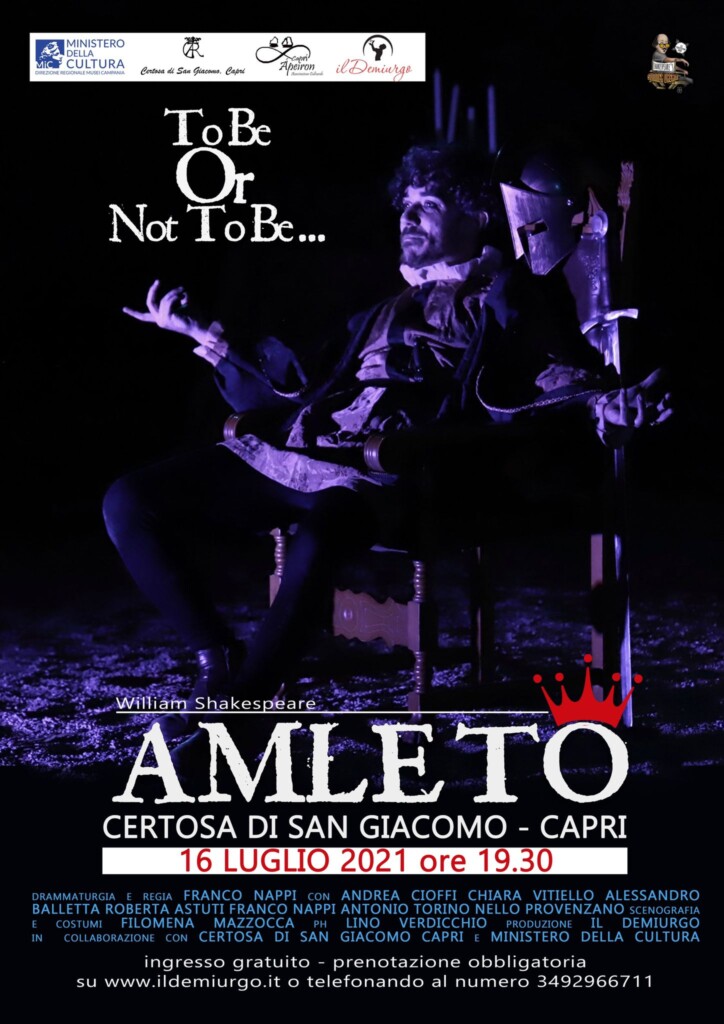 Il 16 luglio 2021, infatti, Il Demiurgo in collaborazione con l’Associazione Apeiron, e la Direzione Regionale Musei Campania porta in scena, alla Certosa di San Giacomo di Capri Amleto di William Shakespeare.