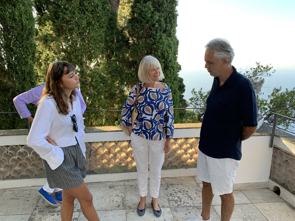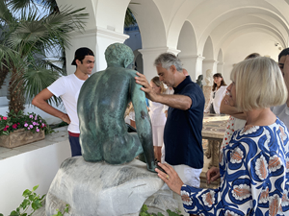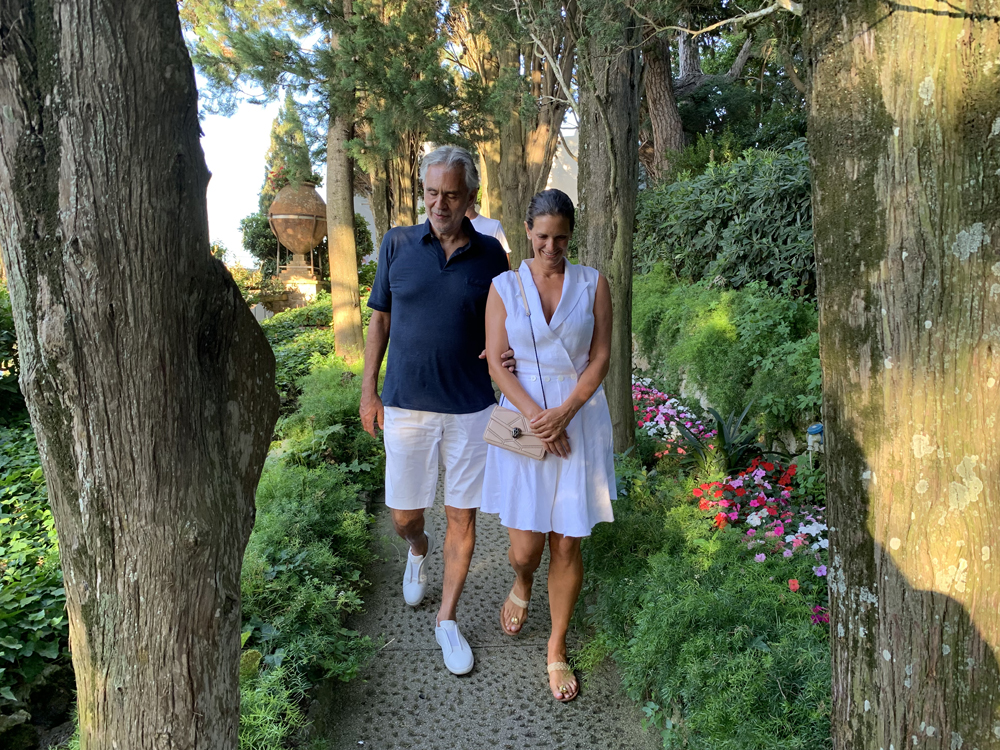 Dopo lo scorso anno in cui il popolare cantante visitò per la prima volta la ex dimora di Axel Munthe ad Anacapri, inizia a diventare una piacevole abitudine per tutta la famiglia Bocelli ritagliarsi un pomeriggio nel giardino più bello d’Italia. “Quando sono a Capri non posso rinunciare a una visita in questo posto magico” – ha dichiarato il celebre tenore – “E’ il libro “La storia di San Michele” che mi ha spinto fino a qui. Credevo fosse un volume sulla vita di un santo e invece, pagina dopo pagina, mi ha incuriosito sempre di più e me ne sono innamorato”. Questa volta, oltre alla moglie Veronica Berti e il figlio Matteo, stella nascente del firmamento musicale, c’era anche il primogenito Amos a cui Bocelli voleva mostrare le bellezze del museo di Anacapri. Accolto dalla soprintendente Kristina Kappelin e suo marito, il giornalista Stefano Cingolani, per più di un’ora il tenore si è intrattenuto lungo i viali, la loggia delle sculture e la terrazza della sfinge. Immancabile una performance al pianoforte per pochi fortunati: Bocelli si è messo comodo e ha intonato, come un anno fa, l’Ave Maria di Schubert, autore preferito del medico svedese. “Axel Munthe è un uomo straordinario, avere il privilegio di respirare l’atmosfera di questo luogo lascia senza parole”. La soprintendente Kristina Kappelin, entusiasta dopo la visita: “Andrea Bocelli è diventato un amico di Villa San Michele, mi piacerebbe che tornasse nuovamente il prossimo anno perché avverto che lo fa con vero piacere, che sia in sintonia con Axel Munthe e questo posto straordinario”.