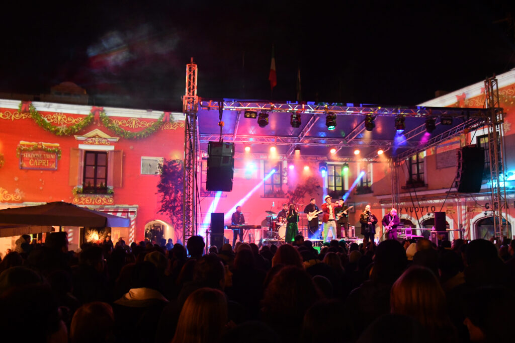 In una piazzetta gremita l’Anema e Core ieri sera si è esibita per un assaggio di Capodanno. Un vero e proprio anticipo di Capodanno con il concerto beneaugurale per il nuovo anno dell’Anema e Core con Gianluigi Lembo e la sua band e con il cabaret di Biagio Izzo. Una piazza affollata come non mai per l’omaggio a Guido Lembo, l’inventore delle notti capresi dove nel suo covo-taverna in quell’angolo di strada di via Quisisana ha fatto esibire con performance canore con lui canzoni napoletane e straniere sul suo palchetto grandi nomi dello star system, che amavano di Capri l’aria genuina che si respira in Taverna.