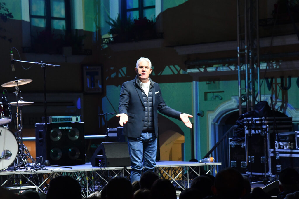 La stessa atmosfera che il figlio Gianluigi che ha raccolto il suo scettro è riuscito a trasferire ieri in piazzetta all’ombra dell’antico campanile coinvolgendo il pubblico tra allegria e commozione, con il suo ormai storico repertorio che rinnova con le novità dell’anno. Applausi a go go, ringraziamenti del sindaco Paolo Falco e dell’amministrazione comunale e dall’assessore ai grandi eventi Salvatore Ciuccio, che ha voluto inserire nel cartellone di eventi delle serate di festa un intero concerto con protagonista Gianluigi. A seguire sul palco è salito Biagio Izzo, famoso artista napoletano che ha trasportato il pubblico con le sue gag e battute in uno show esilarante.
