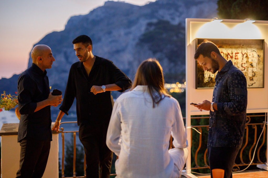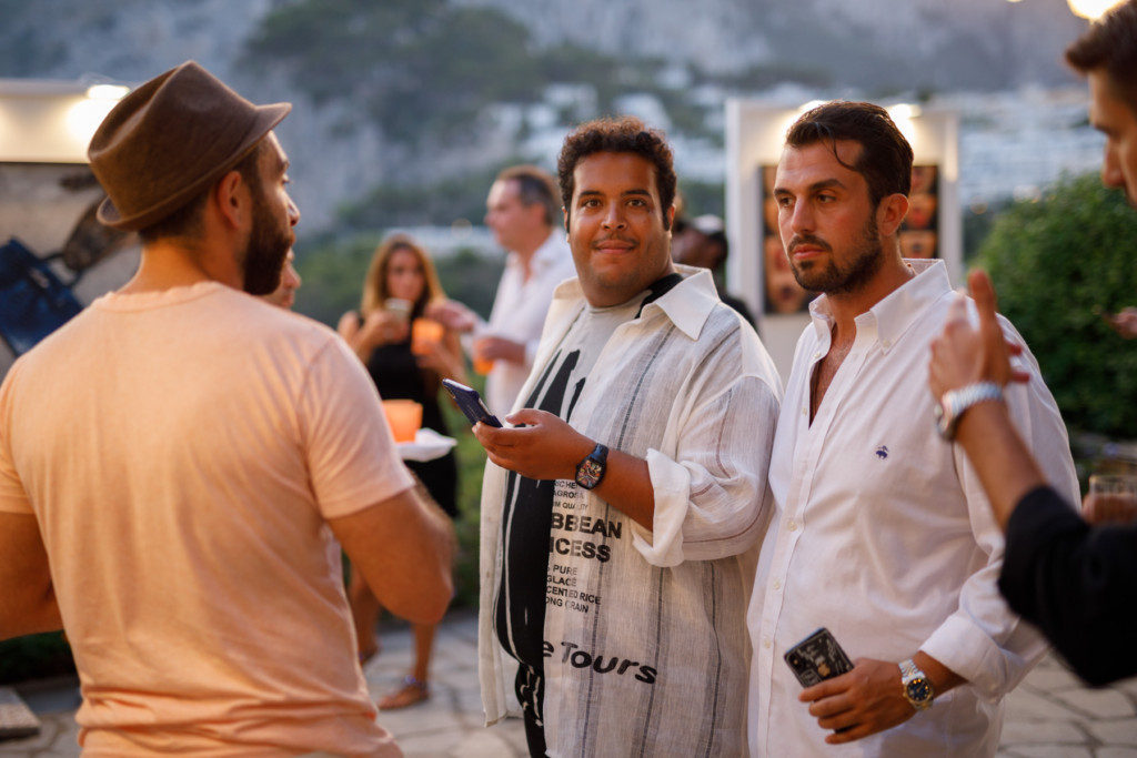 Tra gli ospiti alcuni membri della famiglia reale saudita e coppie di amici e supporter che seguono l’attività dei due giovani galleristi, che hanno già curato diversi progetti artistici tra Basilea, Los Angeles, Miami e Milano, dove fa base la galleria. La scelta stilistica di Stabile e Polito è quella di investire su progetti di arte contemporanea che avvicinino i millennials, loro pubblico di riferimento, con un occhio speciale di riguardo ai sistemi di produzione di massa, dove l’arte si interseca facilmente con i temi della moda, del design e del lusso. È stato annunciato ieri sera il prossimo appuntamento a Tragara, previsto per venerdì 2 agosto con le tele dell’artista Maxwell McMaster, che presenterà una selezione di oli su tela studiati appositamente per Capri. Il titolo del prossimo art show, all’insegna della provocazione, sarà “Vibrations”.