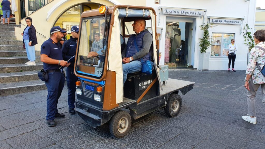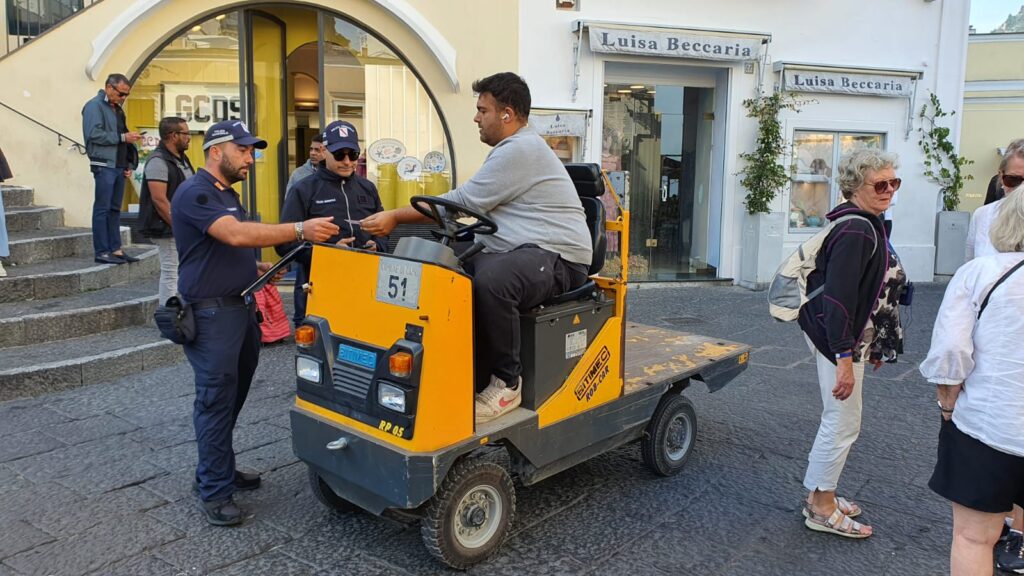 Controlli a tappeto a Capri sui carrelli elettrici, pugno duro della polizia municipale e venti sanzioni in una mattinata, pescati anche cinque mezzi “truccati”. Gli agenti della polizia locale di Capri al comando di Daniele De Marini hanno ispezionato un nutrito numero dei caratteristici veicoli a trazione elettrica, di vario colore che si vedono circolare lungo le strade isolane. I mezzi sono gli unici autorizzati a muoversi nelle zone pedonali e sono da sempre suddivisi in categoria produttiva di appartenenza, contraddistinti da diversi colori e devono seguire precise tabelle orarie di autorizzazione alla circolazione, oltre che ad altre norme previste da un apposito regolamento comunale. E nella sola mattinata di oggi gli agenti agli ordini del Comandante De Marini hanno elevato venti multe. In dieci casi si tratta di sanzioni per dispositivi lampeggianti mancanti o danneggiati e in altre tre per mancato possesso dell’apposito tesserino di riconoscimento che invece da disciplinare comunale deve essere sempre nelle disponibilità del conducente ed esposto in vista da chi si trova alla guida del carrello. Le multe più clamorose e gravi riguardano cinque carrelli che ai controlli degli agenti della polizia municipale di Capri presentavano modifiche apportate alle caratteristiche tecniche del veicolo. Infine, due ammende sono state comminate per trasporto difforme alla categoria di appartenenza, in quanto per ogni “colore” il carrello è autorizzato a caricare e portare a destinazione esclusivamente quanto previsto, per esempio chi è nel settore giallo solo pacchi e bagagli, il blu solo materiale edile e così via.