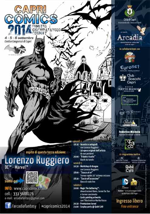 Anche quest'anno a Capri è di scena il fumetto d'autore con il Capri Comics, la manifestazione dedicata al mondo della “nona arte” ideata e organizzata dall'Associazione Culturale Arcadia coadiuvata dall'Assessorato alla Cultura ed Eventi Culturali della Città di Capri.