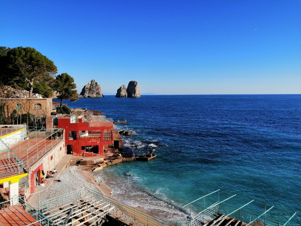 Dopo tanti giorni di isolamento e mare in burrasca, con venti e temporali che hanno causato danni gravissimi, Capri si è svegliata ieri con temperature quasi estive. E così ieri mattina villeggianti, capresi, turisti ed habituè sono usciti da alberghi e case per proseguire i festeggiamenti natalizi nella baia dei Faraglioni, quella più a sud dell’isola, dove le temperature miti permettono di immergersi in acqua perfino d’inverno. Moltissimi i turisti che hanno approfittato della bella giornata per fare un giro in gozzo o per immergersi nelle acque della Piccola Marina o della Fontelina, proprio a ridosso dei Faraglioni. Immagini spettacolari dell’isola azzurra, come una tavolozza policroma, hanno fatto il giro del web, sui social tra Instagram e Facebook. Le cale, gli anfratti, le grotte e le marine dell’isola baciate dal sole, luoghi incantevoli tra l’arco naturale, la fontelina, il faro, la baia dei Faraglioni, con tutte le sfumature di verde e di azzurro, erano un panorama davvero suggestivo per i turisti invernali che hanno iniziato ad affollare l’isola in questi giorni festivi dove in tanti si danno appuntamento, da sempre, per festeggiare la notte di San Silvestro.